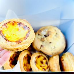 Although the business hours are reasonable, arriving later in the afternoon means Paderia has no more malasadas nor ensaimadas, just cookies. After a day or two, I returned again with malasadas in stock, but not ensaymadas, again. If you're expecting Leonard's (on Oahu) malasadas which are light, these aren't it. Paderia's malasadas are not as light. The same is true for the egg tarts. The cookies remind of NYC's Levain.